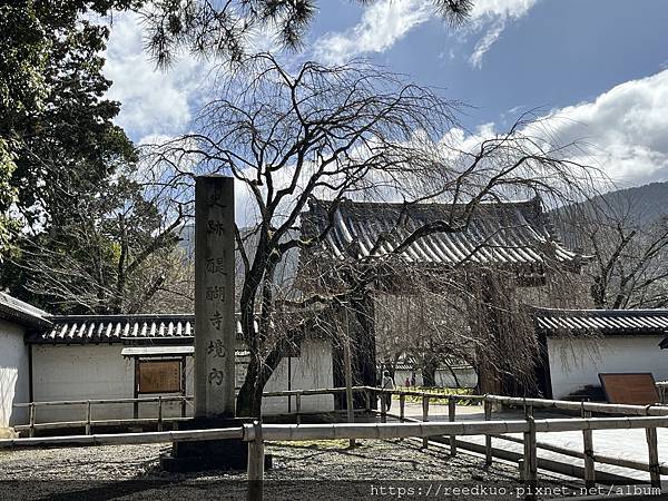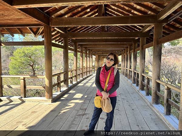 通天橋是京都賞楓的名所,在橋下一大片楓樹及槭樹林,在賞楓時節一片紅火,號稱京都賞楓首選,可惜我們來的季節不對,只看到了一片光禿禿的樹林。在通天橋下有條小小的澗玉溪貫穿寺中。