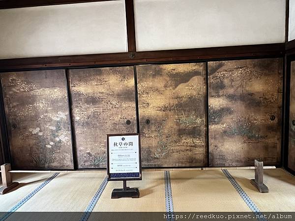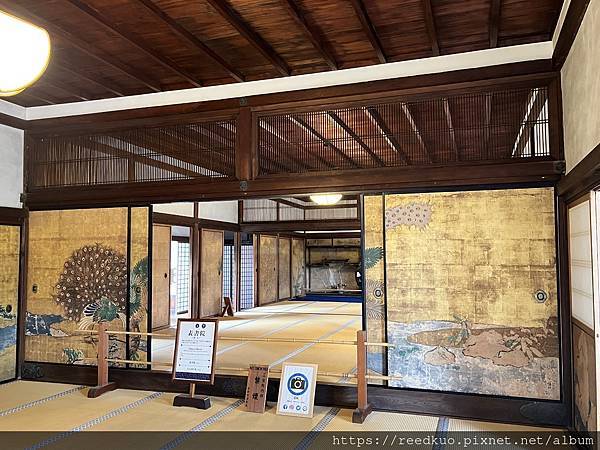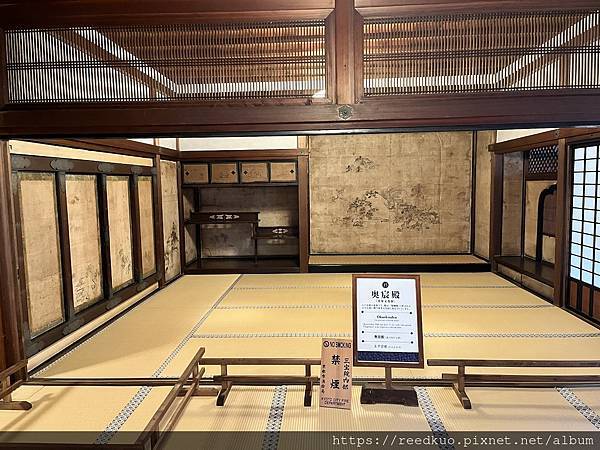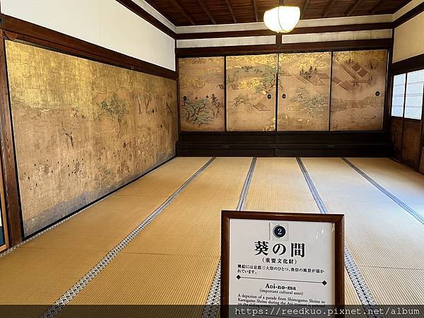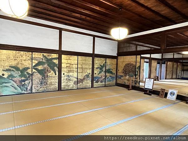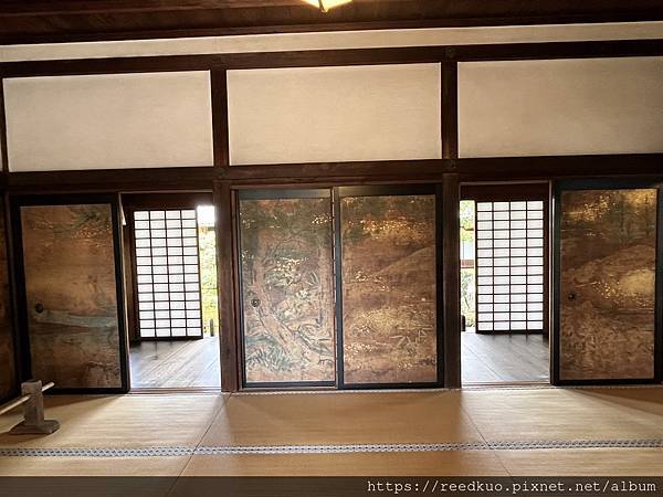玄關是歷代住持居住的處所,入口有三間接待室,目前可付費參觀,其中「葵之間」即是距離入口最近且面積最大的一間,「秋草之間」和「敕使之間」分屬第二、第三間居室,三間的拉門上均有極珍貴的畫作,「葵之間」是葵祭,「秋草之間」是夏日七草,而「敕使之間」則是竹林花鳥圖。