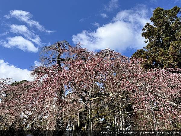 醍醐寺亦是聯合國國際教科文組織評選的世界文化遺產之一,院區分為上醍醐、下醍醐和三寶院,因為院區範圍很大,我們只參觀了三寶院及下醍醐,至於下醍醐就留待以後有機會再來。三寶院原建於1115年,在1598年由豐臣秀吉重建,入口的太閣枝垂櫻是櫻花的完美象徵,我們到訪適逢太閣枝垂櫻盛開,周圍圍滿了拍照的人群,不想拍到人頭的話,只能由下往天空拍。