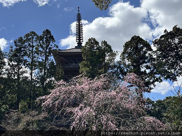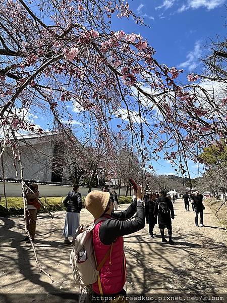 到關西這幾天臉書社團上一片衰嚎櫻花沒開,好不容易終於有人貼了醍醐寺的憲深林苑開了一大片,於是一大群賞花客都往醍醐寺衝,參觀完三寶院的玄關及庭園後,進入憲深林苑果然滿苑的櫻花滿開,不知道是不是醍醐寺的參觀費太高?還是因為憲深林苑地勢底圍牆高,在三寶院參道上看不到櫻花?所以捨不得花錢買票進入,也因此憲深林苑雖然不大,但苑內人潮還算好,反而不如三寶院前擠滿拍太閣枝垂櫻的人潮。到日本這麼多天終於看到一整片滿開的櫻花林。